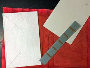 All ready to go with fresh paste, new scalpel blade, and assorted folders/triangles/straightedges/sponge/water/paste brush/band nippers…