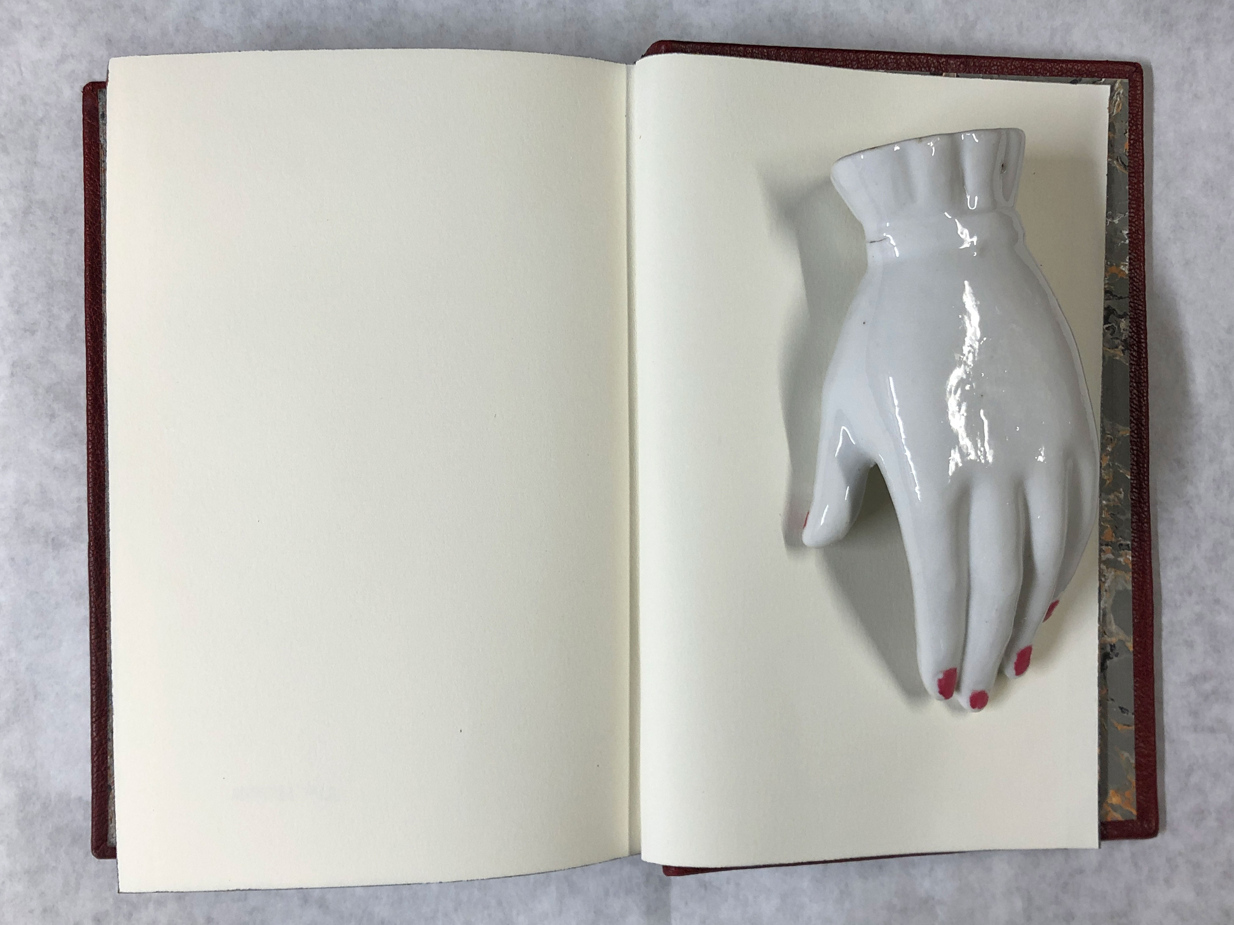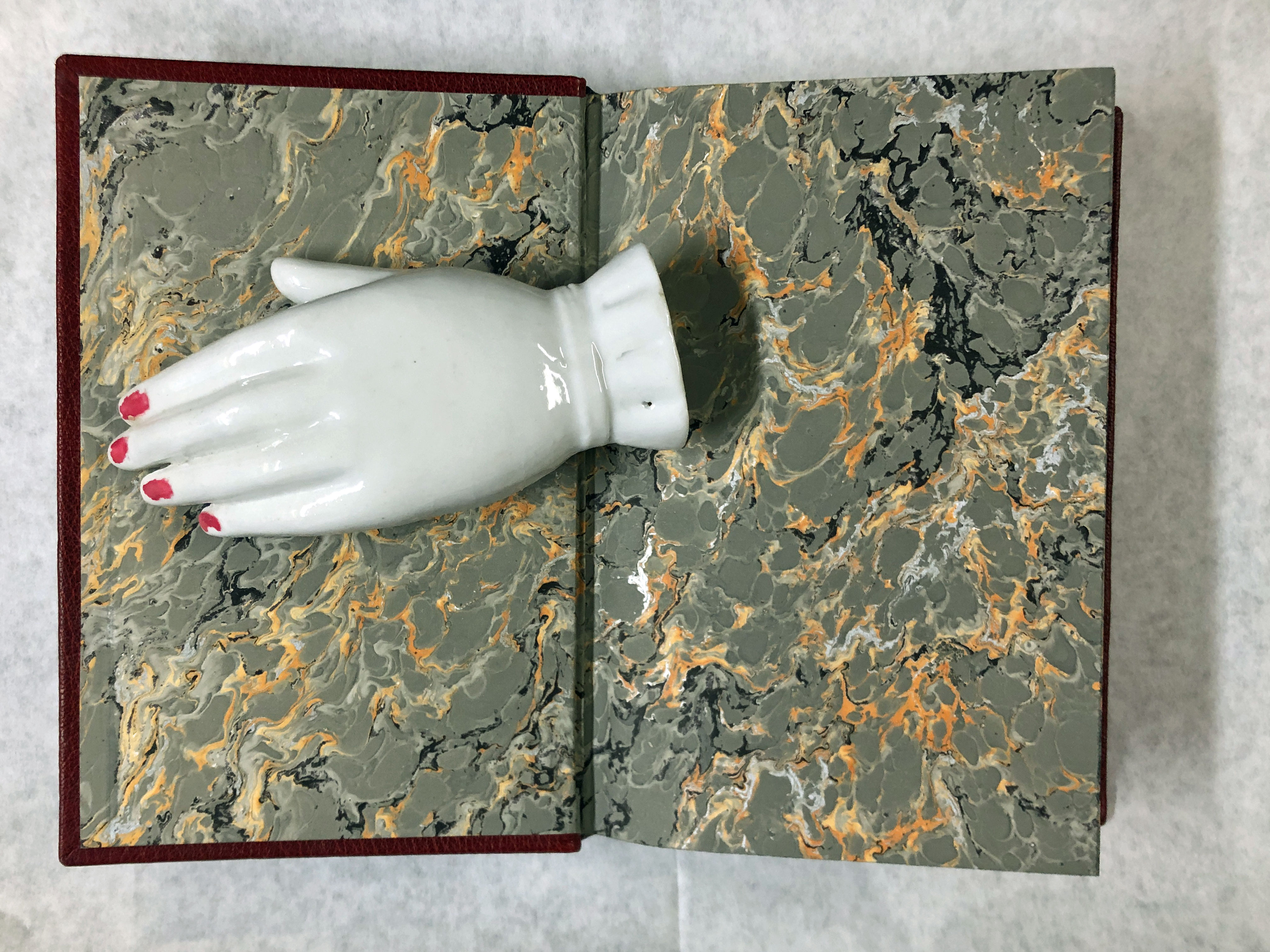 After cleaning and reshaping the spine, I reglued it, decorated the book edges, attached leather endbands, then lined spine with suede and sanded that smooth.