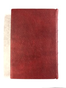The leather’s not actually that mottled … I had shadows on the photo. I gave the book some final primping, trimming, protective leather treatment, and sent it off in the mail.